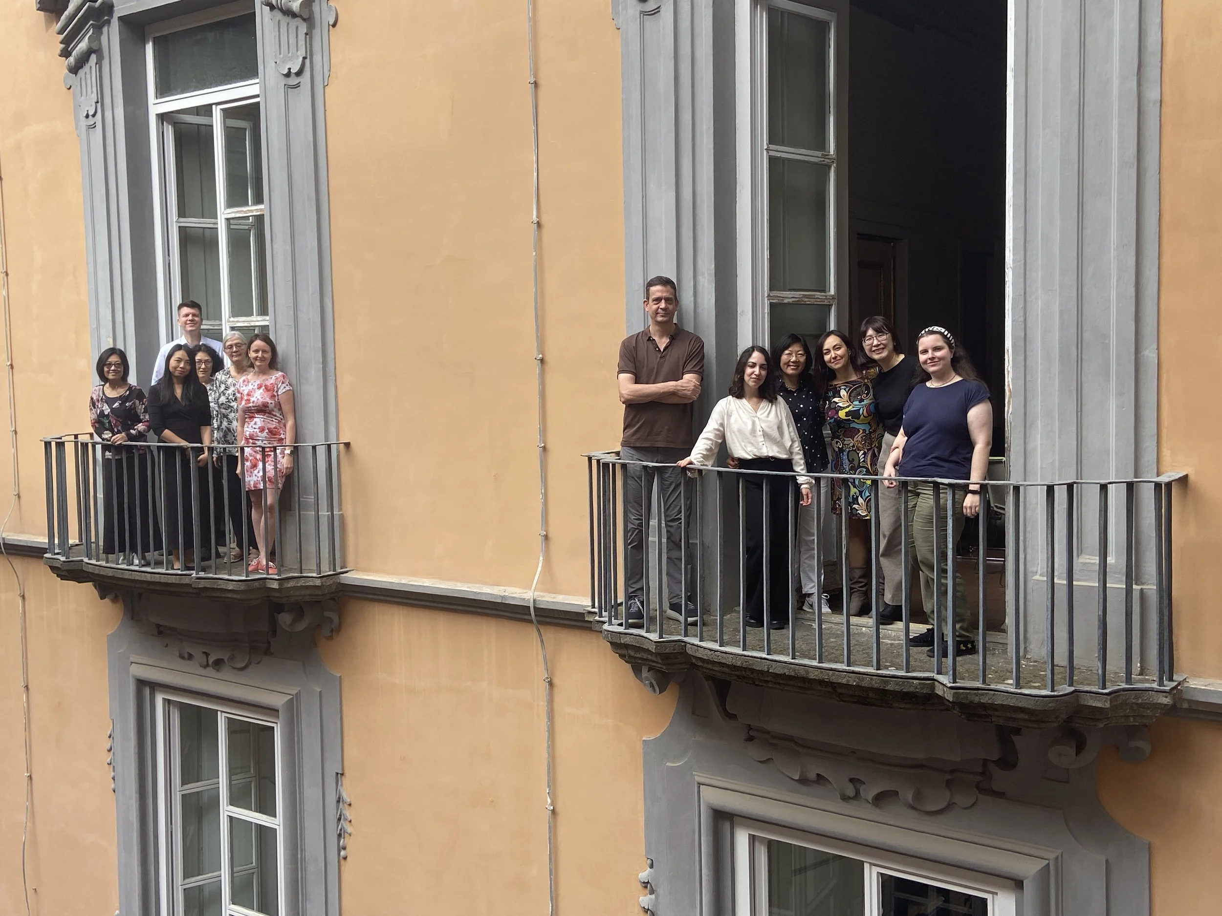 John and the Chingram team stand on the balconies of L’Orientale University of Naples, Italy.