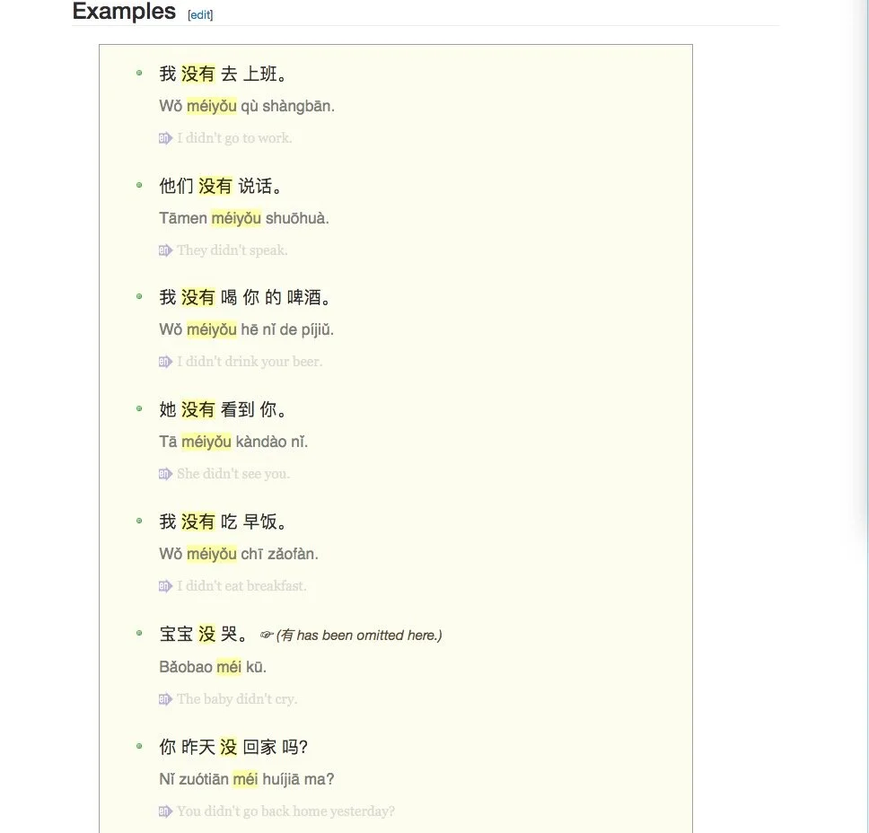 Negation of past actions with "meiyou"